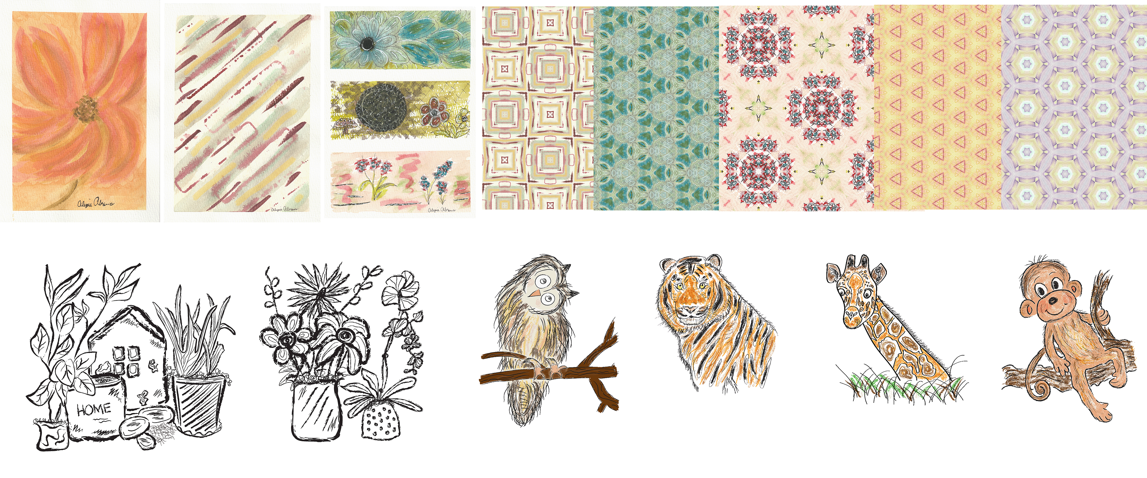 Hi! My name is Alysia Abrams, and I am an artist and illustrator. I draw by hand and also draw and illustrate digitally, using Adobe Illustrator and Photoshop. I create original watercolor paintings, and some of them are used to design seamless patterns (how cool is that, right?). I have been drawing and painting my entire life, and I have recently decided to make my hobby a career. My goal is to create artwork that is different, sometimes whimsical, and just fun. I hope to inspire people to welcome creative art into their lives, knowing that each piece of art was exclusively created by an independent artist in Tennessee.
